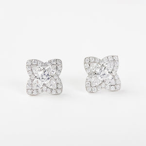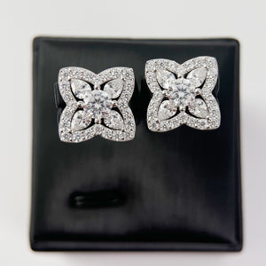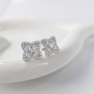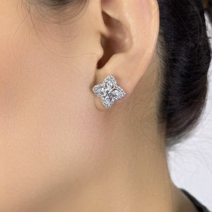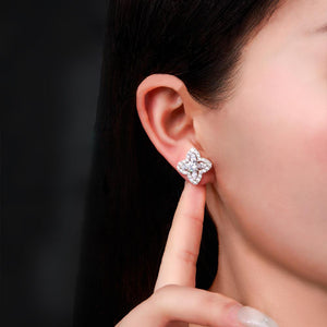 Aurabelle 925 sterling silver with 5A zircon earrings, four-leaf flower earrings, with additional silicone Bullet Ear Stoppers