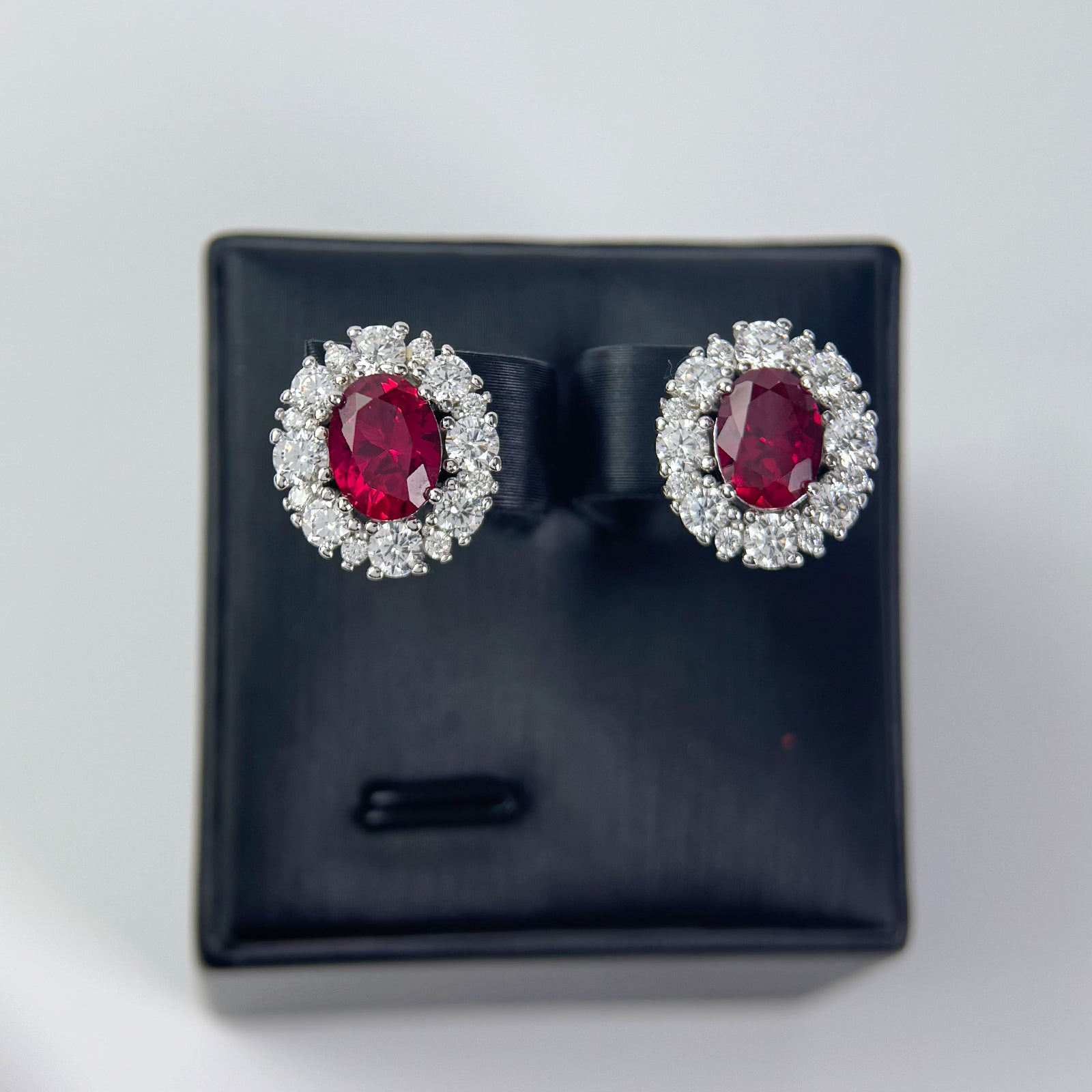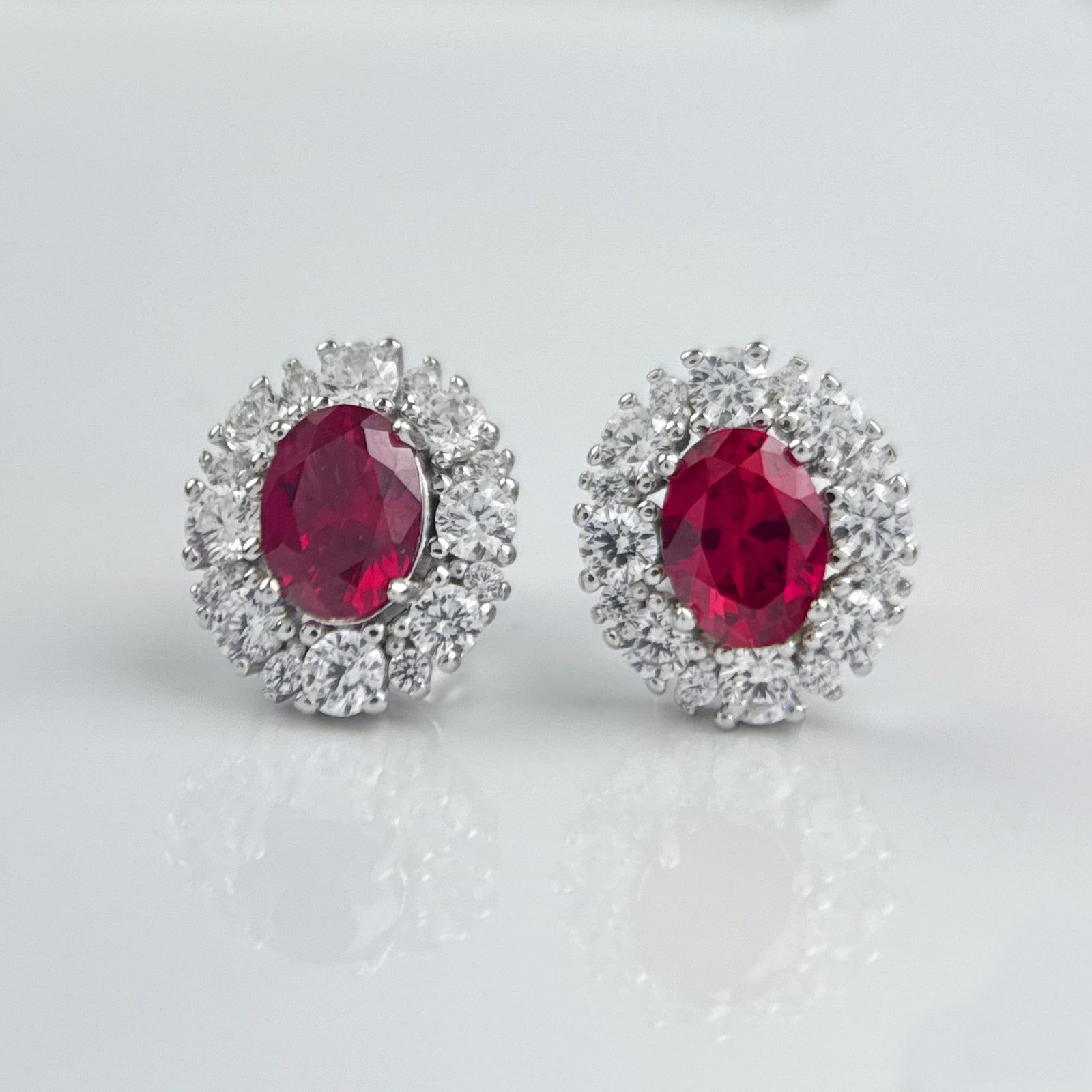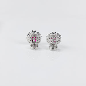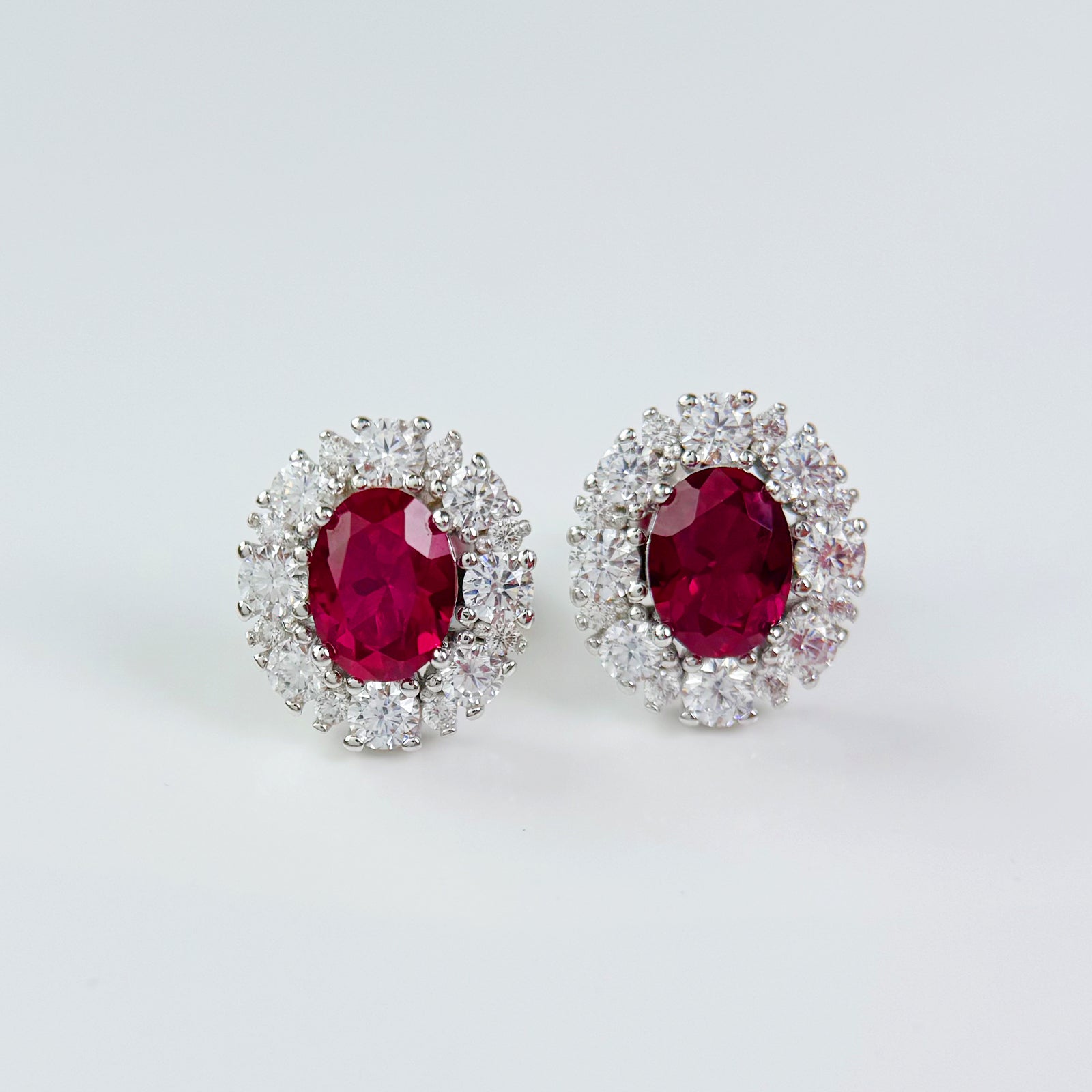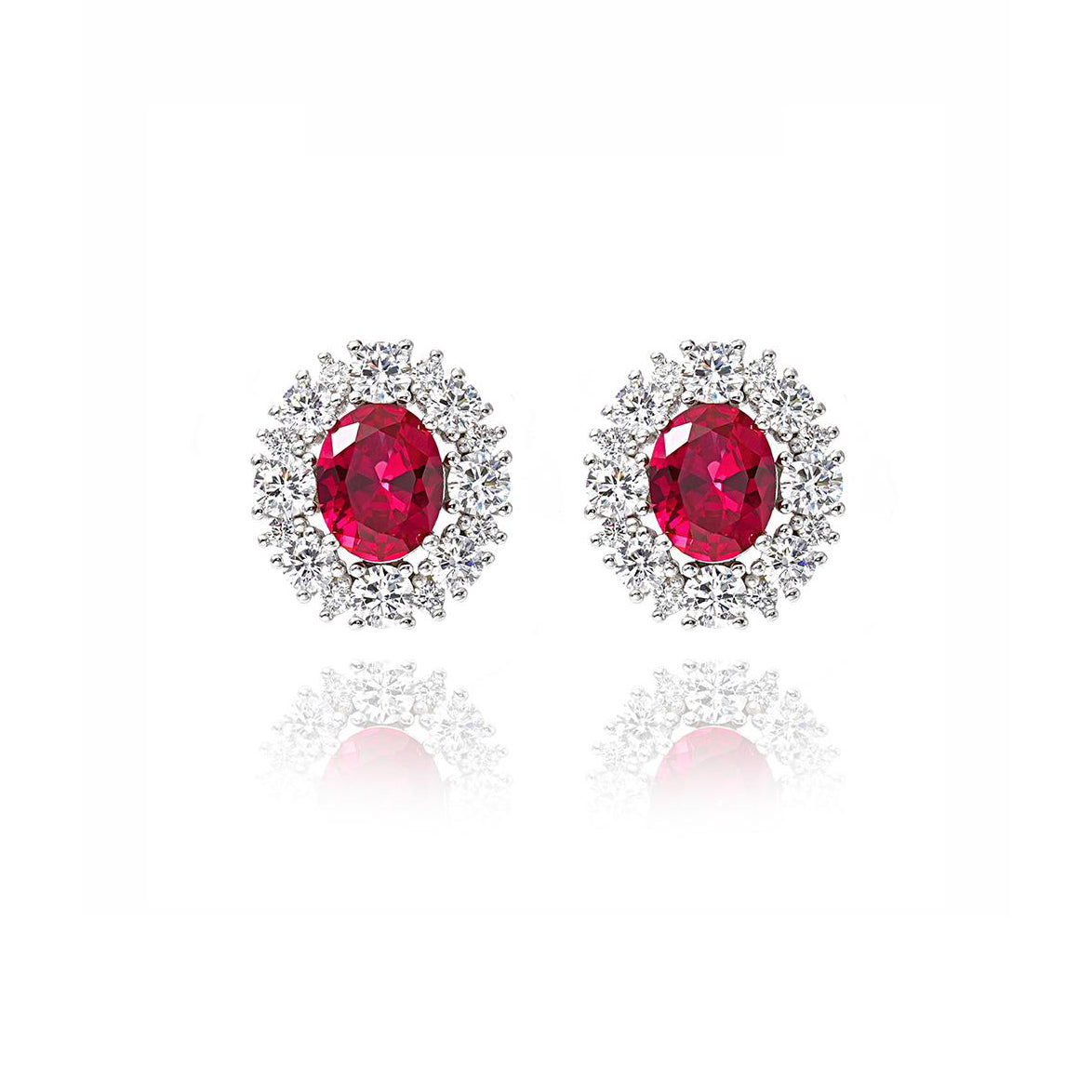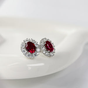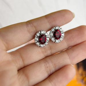 - An oval red zircon is inlaid in the center of the earring, which is dazzling and surrounded by a circle of brilliant diamonds, exuding charming brilliance.