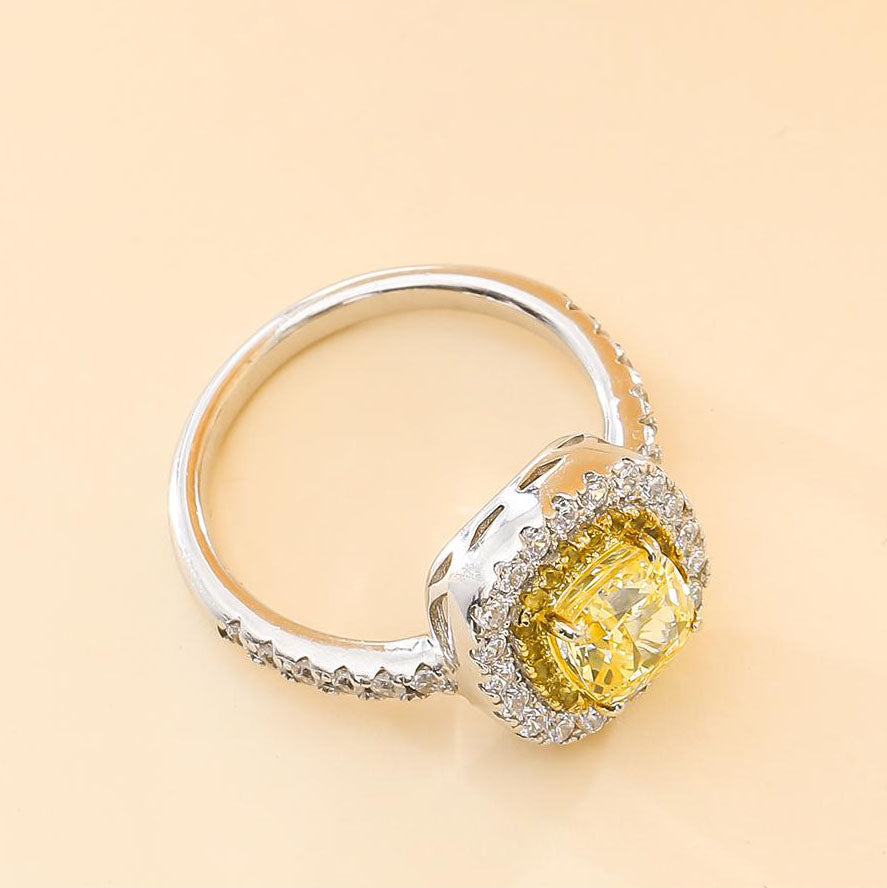 AuraBelle 925 Silver Yellow Small Baguette Gemstone Ring