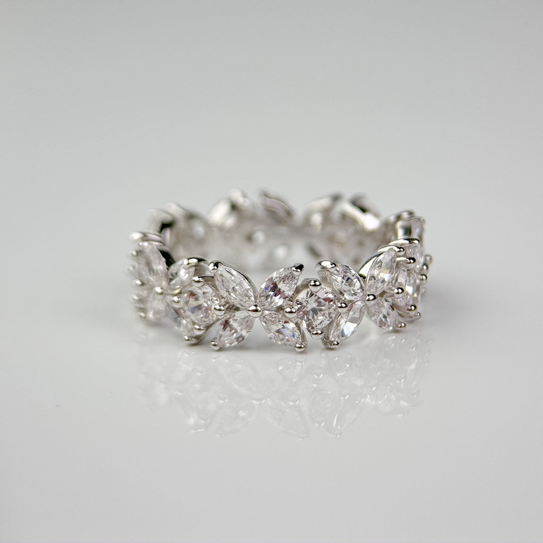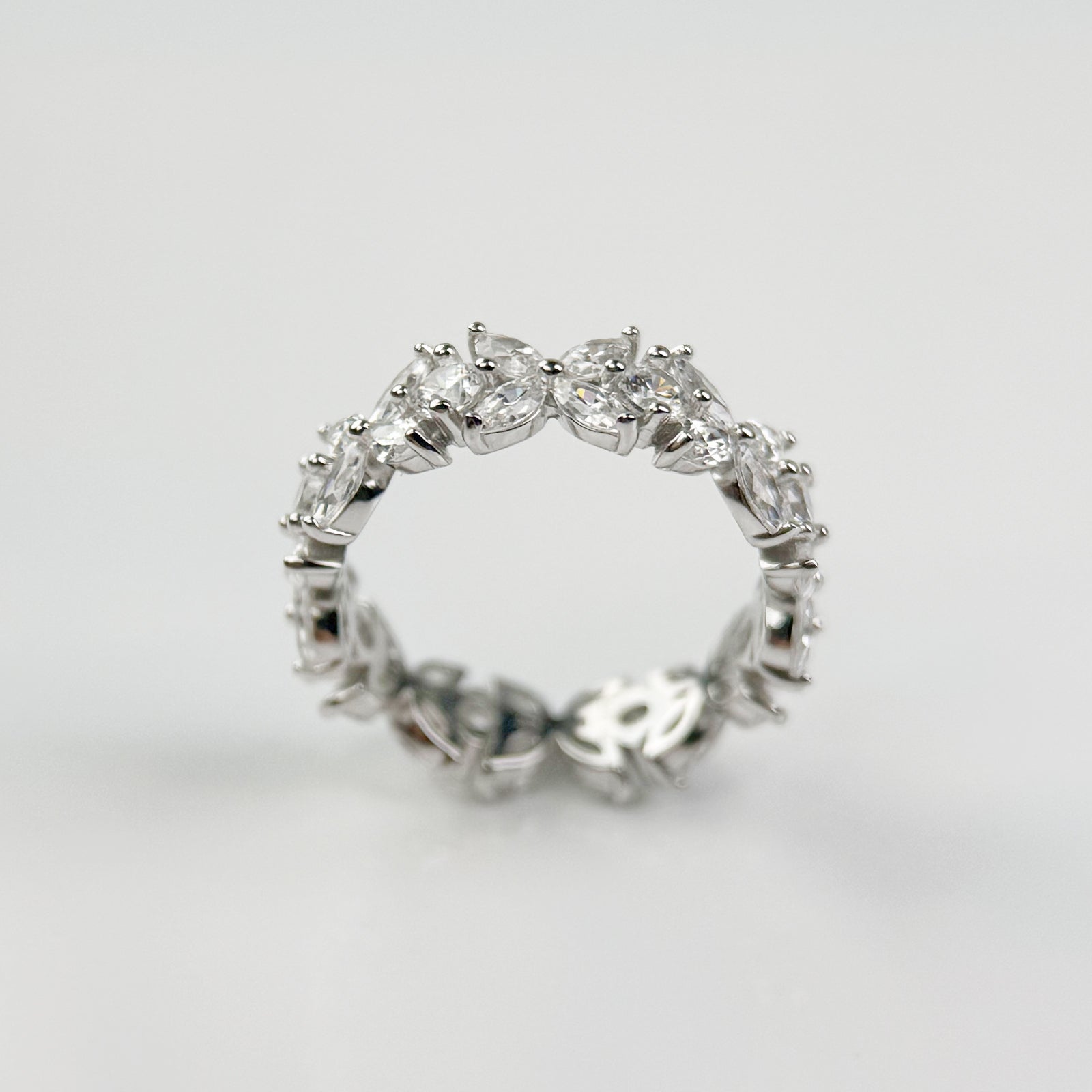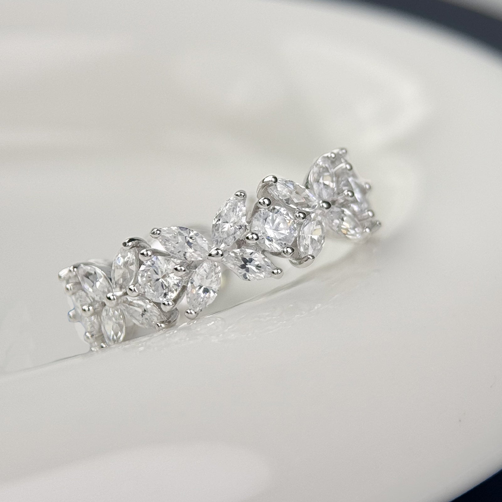 Aurabelle 925 Sterling Silver 5A Zirconia Ring – Leaf Rhythm Blossom Ring