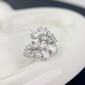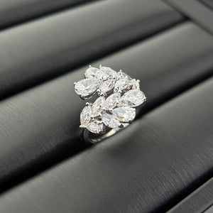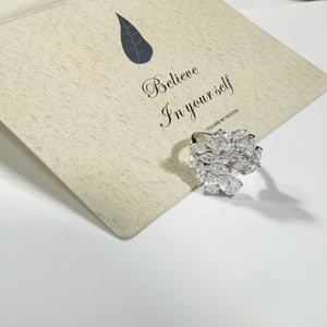 AuraBelle 925 silver ring inlaid with artificial zircon leaf style fashionable and versatile