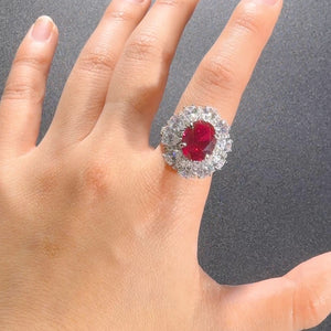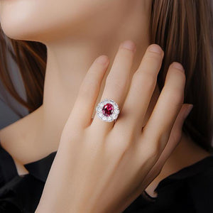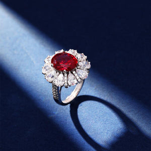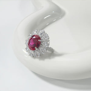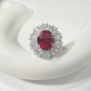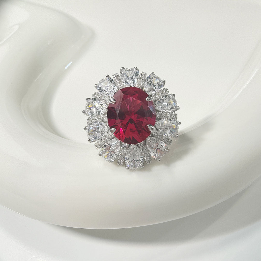 AuraBelle 925 red zircon ring oval main stone, rhodium-plated ring setting is smooth, delicate and comfortable