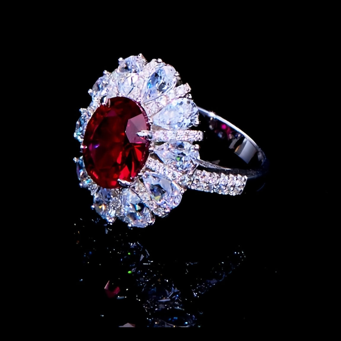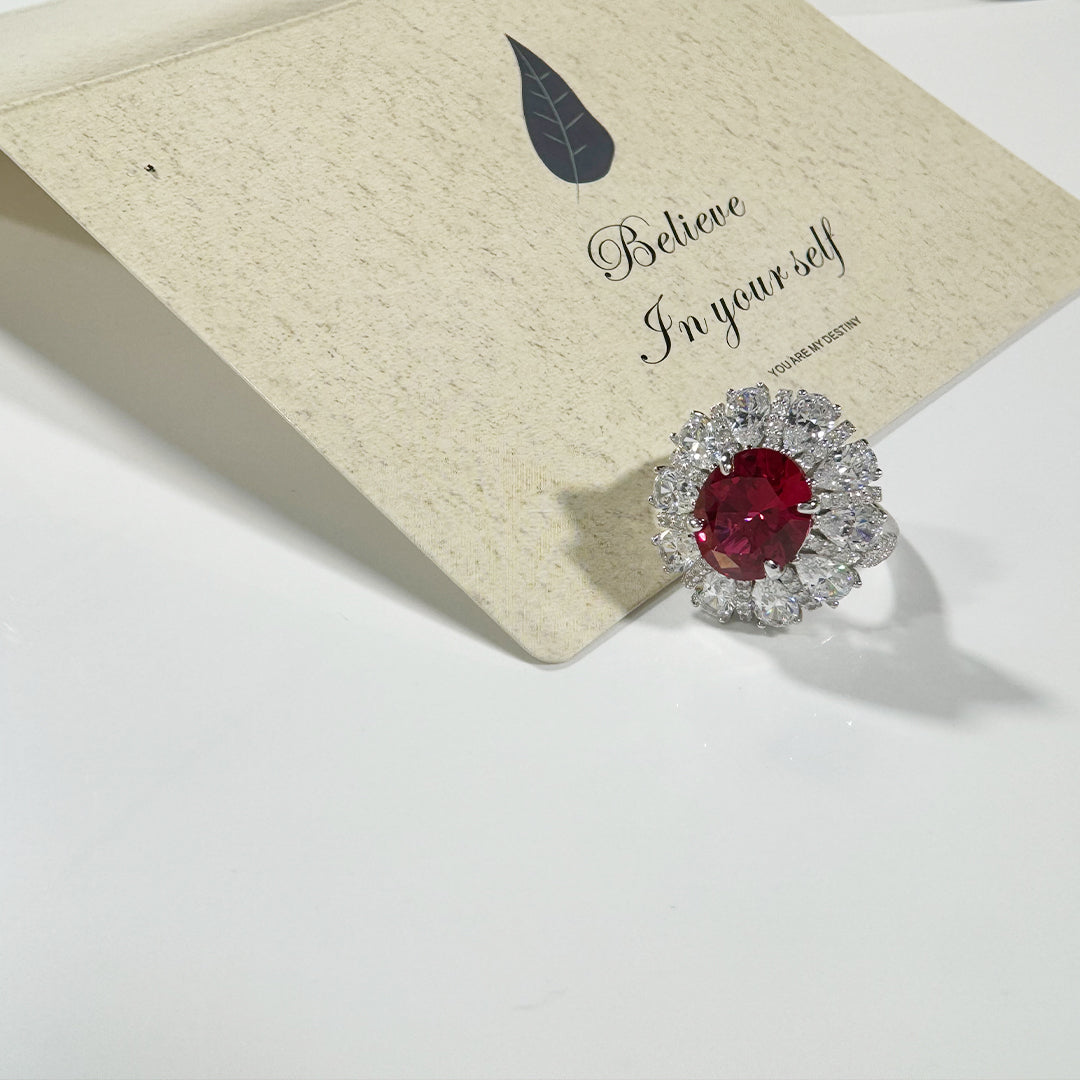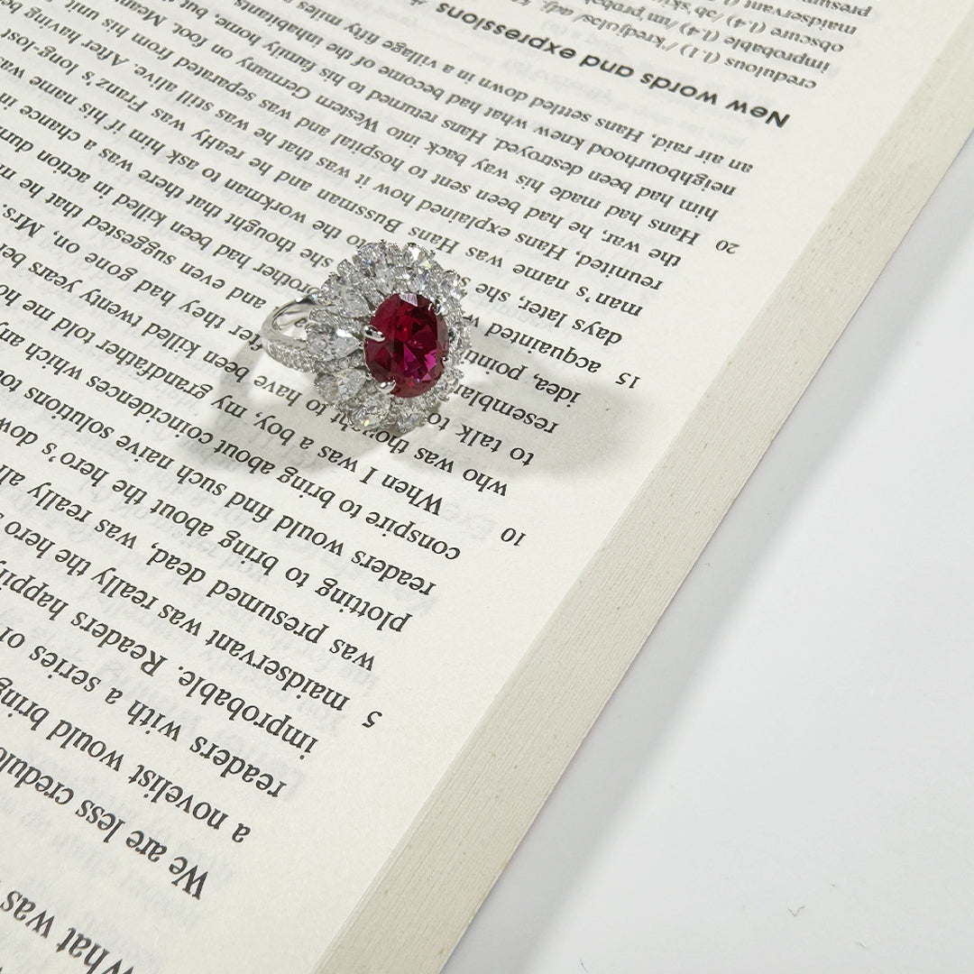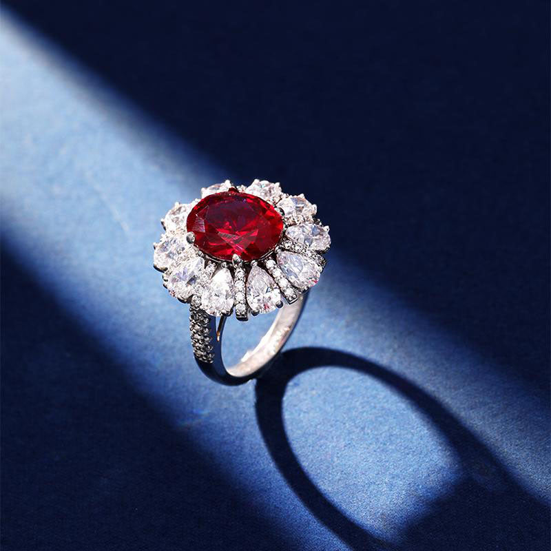 Similar Products: AuraBelle 925 red zircon ring oval main stone, rhodium-plated ring setting is smooth, delicate and comfortable