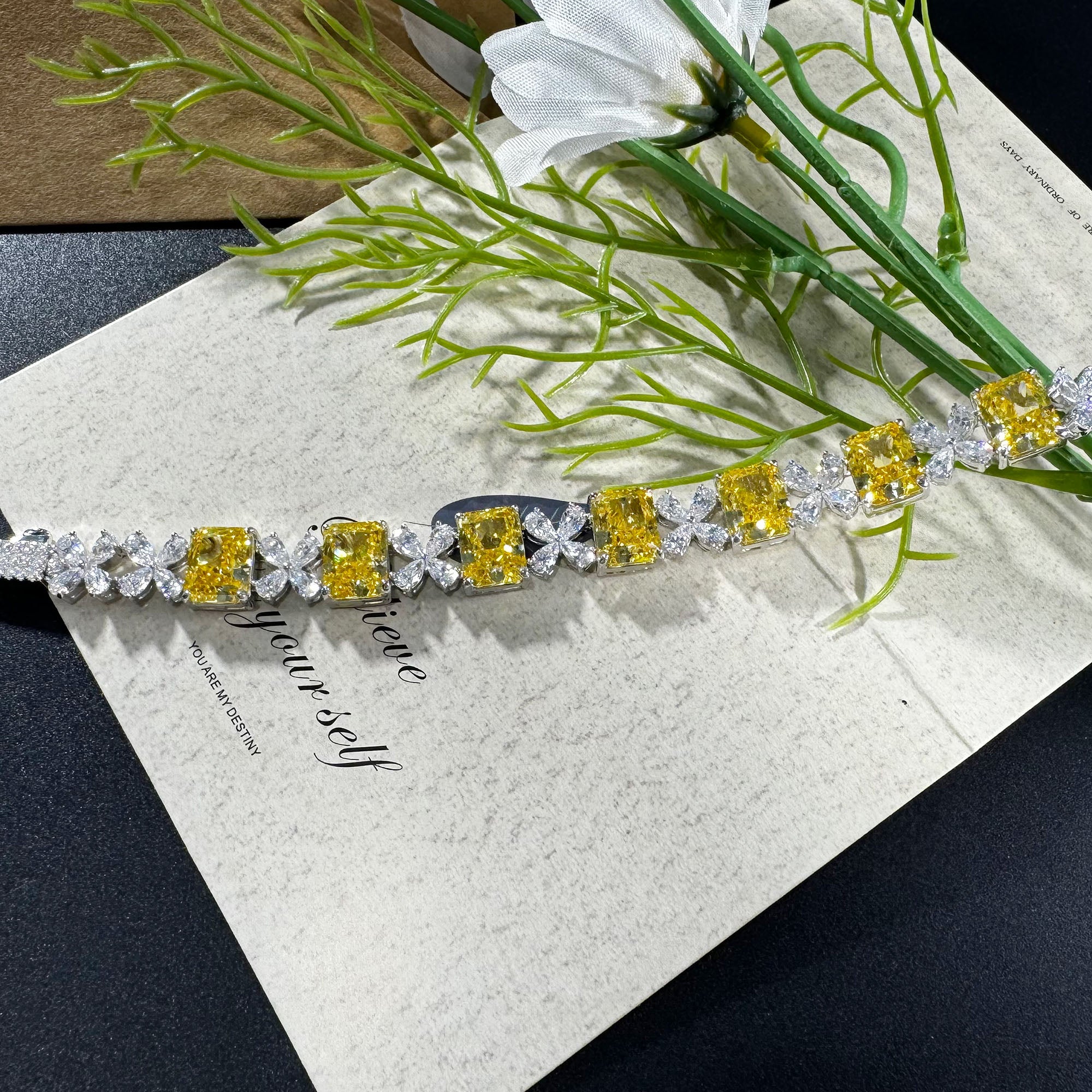 AuraBelle 925 Silver Yellow Sapphire and White Star Zirconia Luxury Bracelet