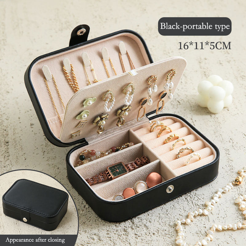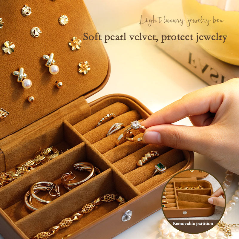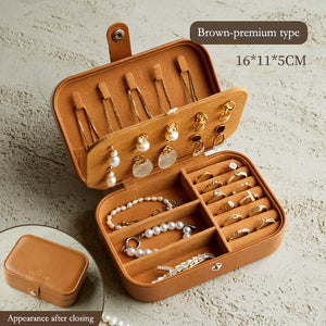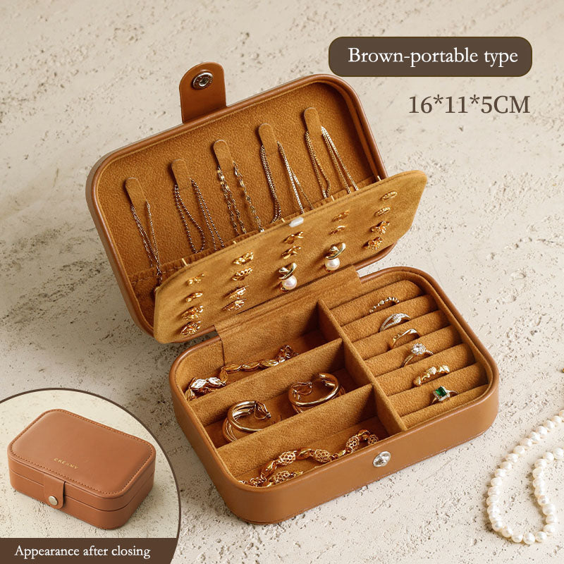 Leather portable jewelry storage box, small exquisite jewelry storage bag, ring necklace earrings, gold diamond jewelry storage box